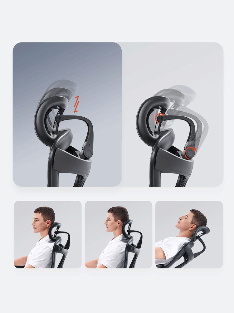 Librement ajustable, l'appui-tête se déplace avec une fluidité remarquable, tant verticalement qu'horizontalement, et peut pivoter avec une précision exquise.