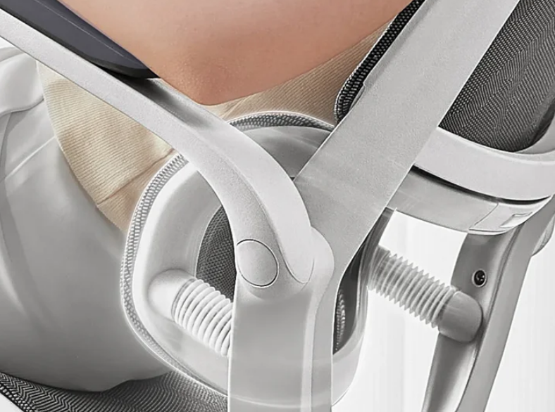 L'appui-tête suit la courbe cervicale et offre un large soutien pour un confort optimal. Avec un mécanisme à double articulation, réglable en hauteur et pivotable sur deux axes.