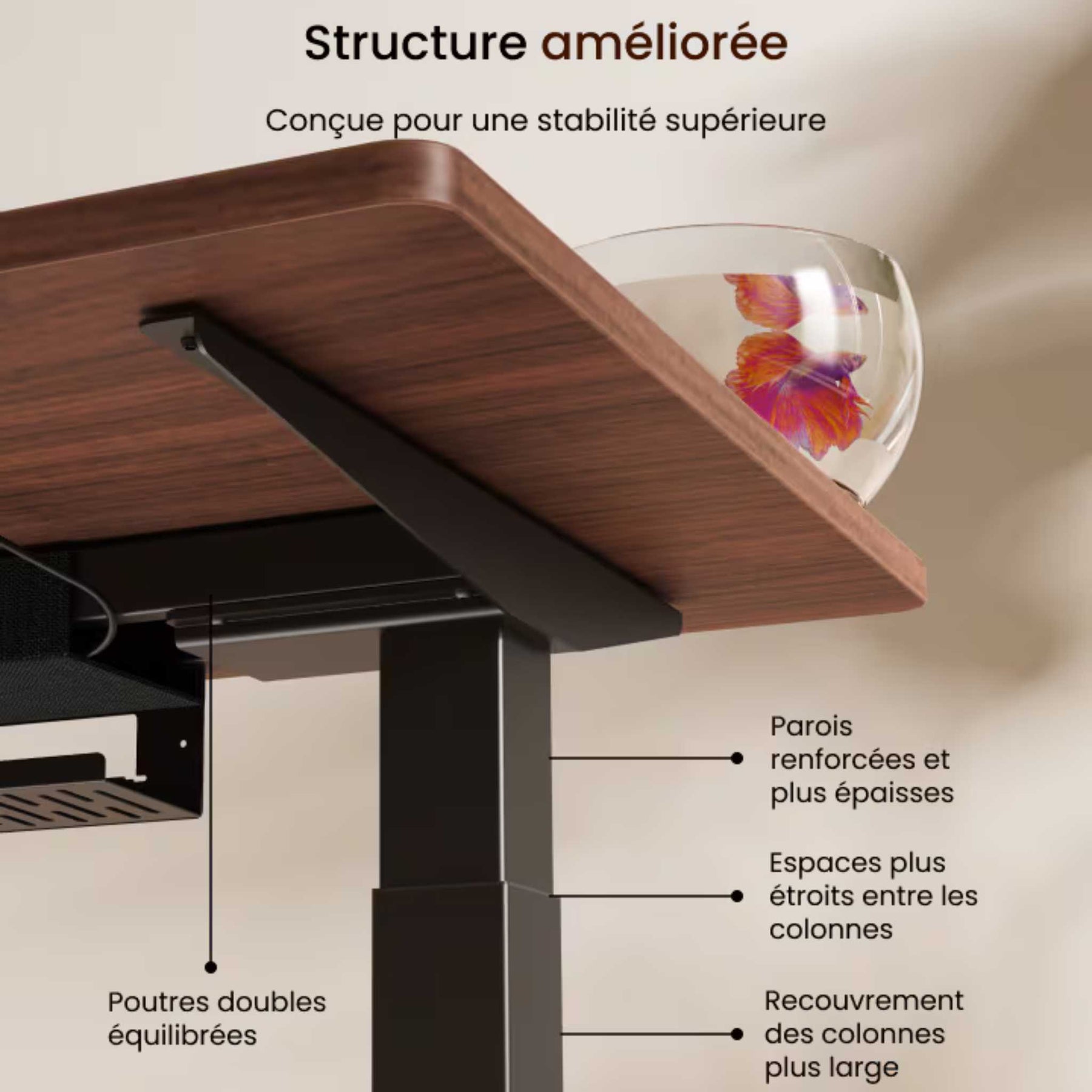 Adaptez votre espace de travail à vos besoins grâce à ce bureau assis-debout robuste, silencieux et intelligent. Conçu pour le confort, la sécurité et l'efficacité, il s'intègre parfaitement dans tout environnement de travail, à domicile ou au bureau.