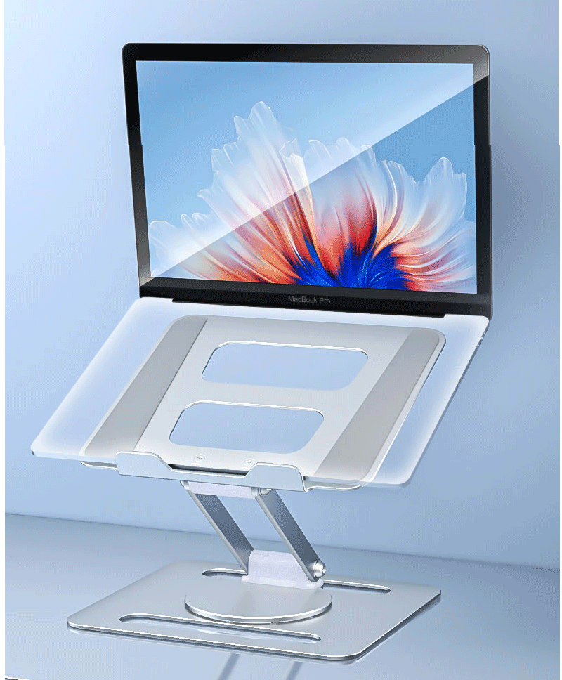 Découvrez notre support pour ordinateur portable réglable en hauteur, conçu pour offrir une expérience de travail confortable et ergonomique.